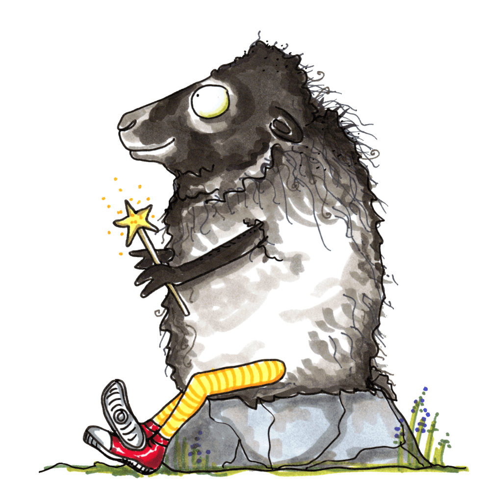 Kürzlich habe ich sogar ein Schaf kennengelernt, Fee. Fee ist ein liebenswürdiges Bretonisches Zwergschaf, das in Ostösterreich in der tiergestützten Intervention tätig ist und mittlerweile auch Red Shoes trägt – zumindest auf dem Papier. Fee verbindet interessanterweise einiges mit der Red Shoes Fairy, einer Figur, die vor einiger auf meinem Zeichentisch erschienen ist. Red Shoes Fairy weist zwar menschliche Züge auf, sie ist aber definitiv ein Zauberwesen.