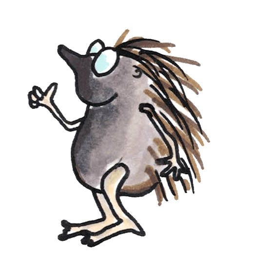 After drawing many cheeky mice and more or less confused moneybags, the desire for another companion grew. One day the first hedgehog appeared on paper. In the meantime, the hedgehog has even a few companions.