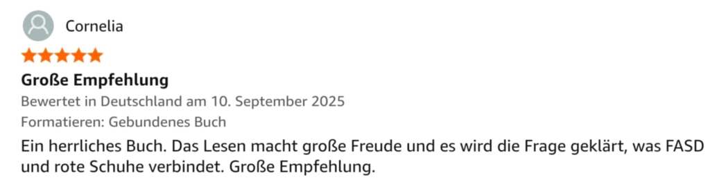 Das Buch bietet im Nachwort Informationen über FASD und die Bedeutung der roten Schuhe.