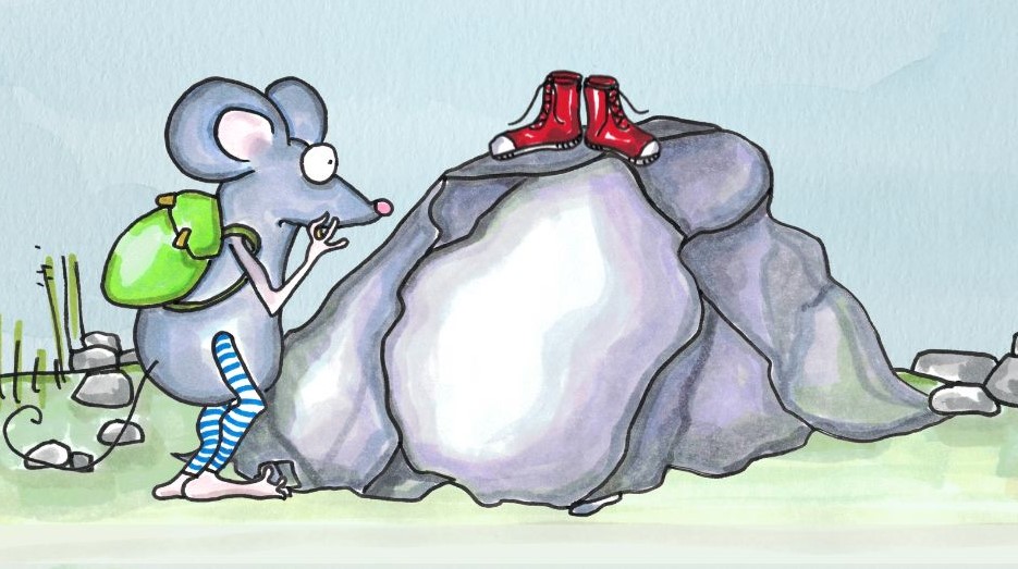Die roten Schuhe der Wandermaus ist ein Bilderbuch für Kinder wie für Erwachsene. Eines Tages findet die Wandermaus überraschend rote Schuhe und nach einigem Überlegen beschließt sie, sie anzuprobieren.